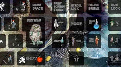 こちらは、USB接続のキーボードに関する補足説明になります。本キーボード、何よりリヴァイアサンの巨大さが良く分かる仕様になってます。そして向かって左上、神に選ばれなかったのを象徴するかのようにESCに行方不明のデビル様を備え、その下には探索中のアダモ達、真下の半角全角のアダモはデビル様を見つけたのでしょうか?その隣のアダモは喜んでいるようにも見えます。1番に発見したのでしょうか?少し離れた所にいるミカエルとはいつか出会うことがあるのか?と妄想が広がる事必至。
